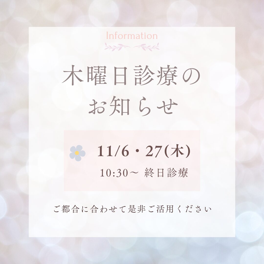 11月6日および27日は木曜日ですが開院しております😆👩⚕️