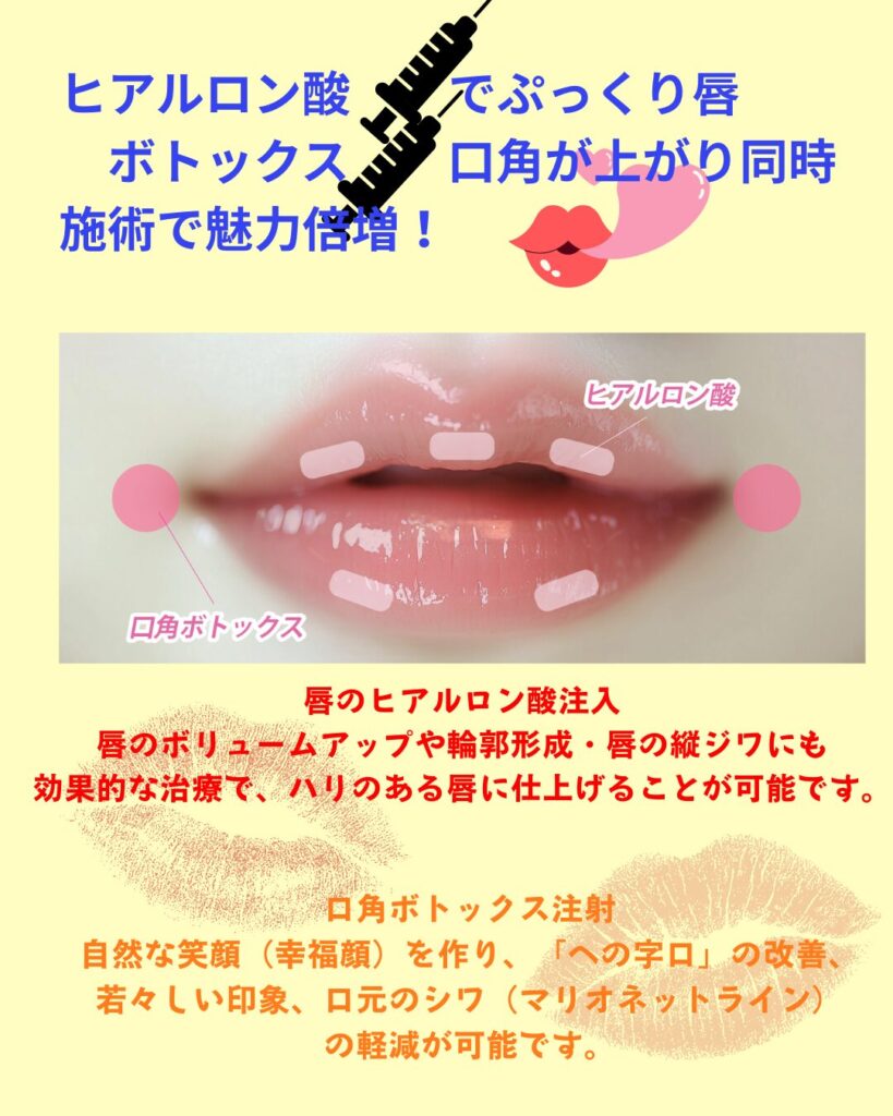 唇ヒアルロン酸と口角ボトックスを組み合わせ、