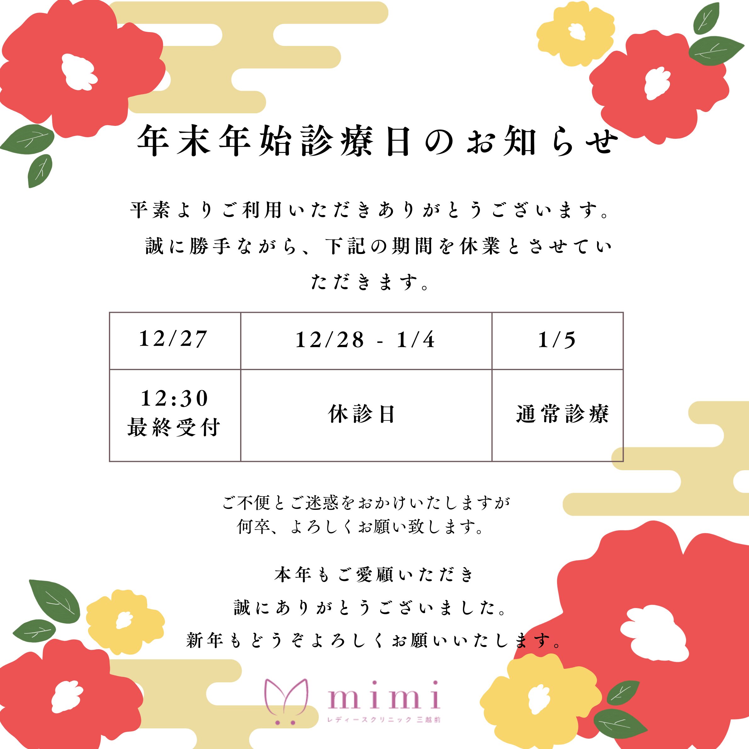 年末年始休診日のお知らせ