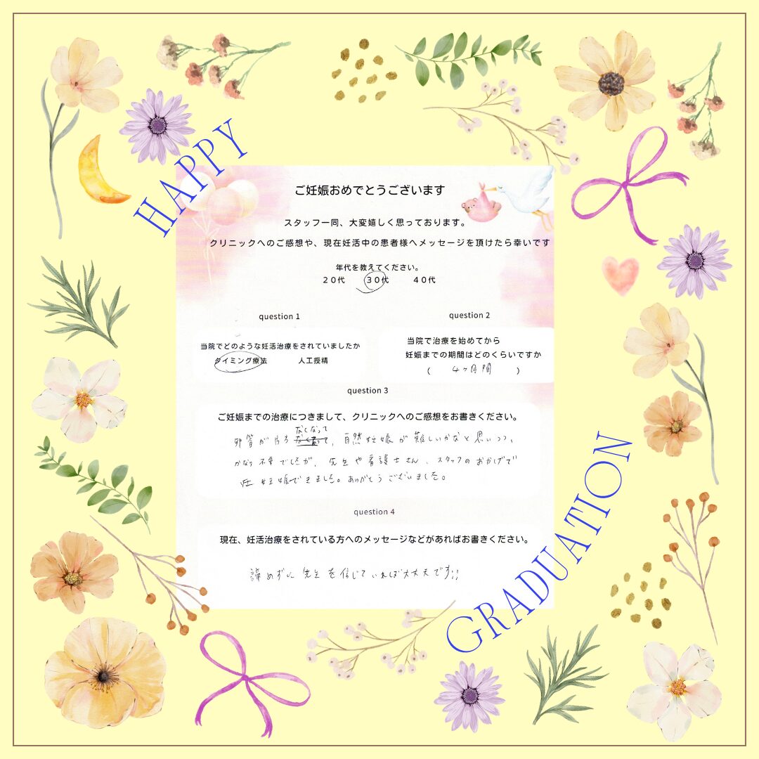 スタッフのおかげで妊娠できました。ありがとうございました。